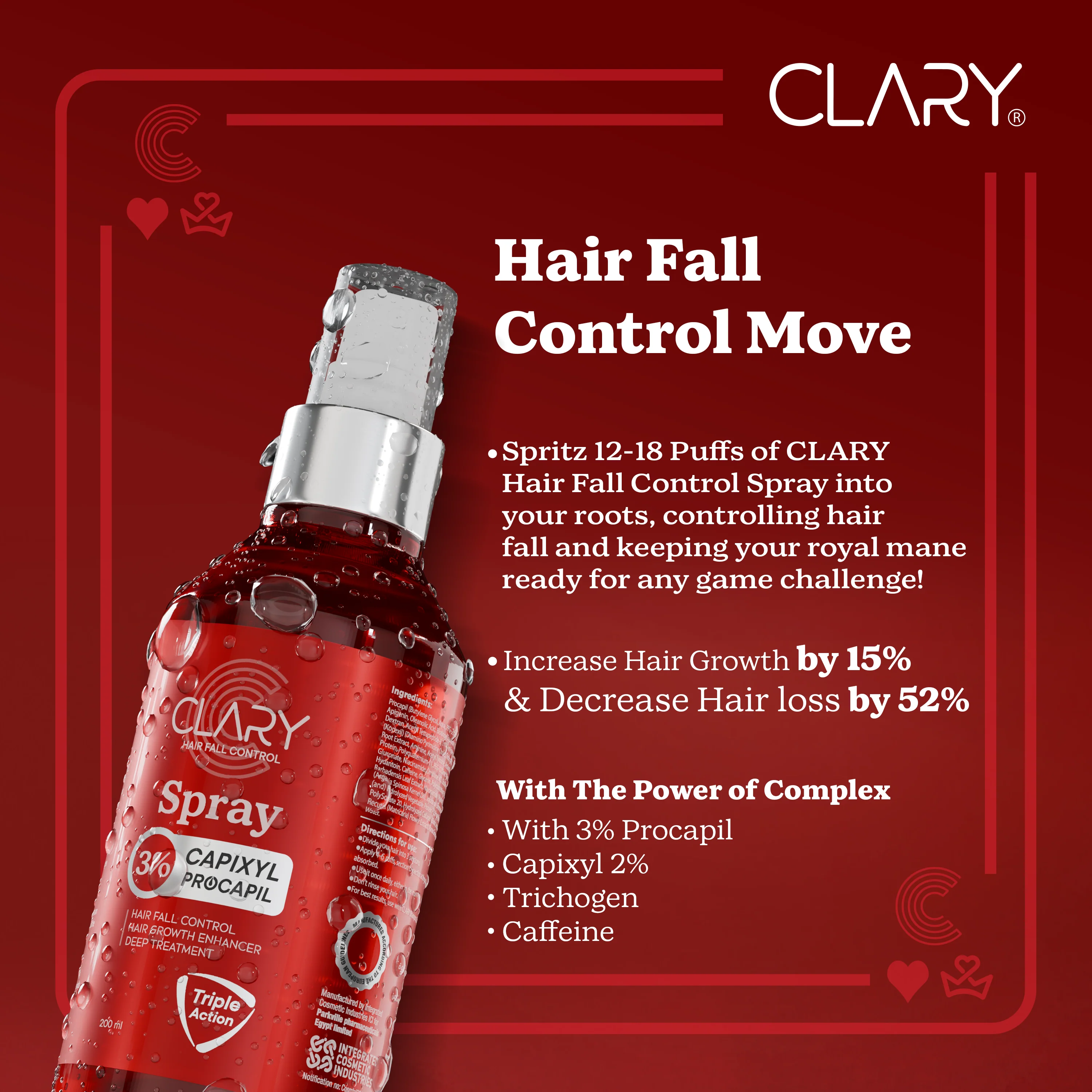 CLARY Hair Fall Control Spray” is specially formulated to act against the main causes of hair loss: