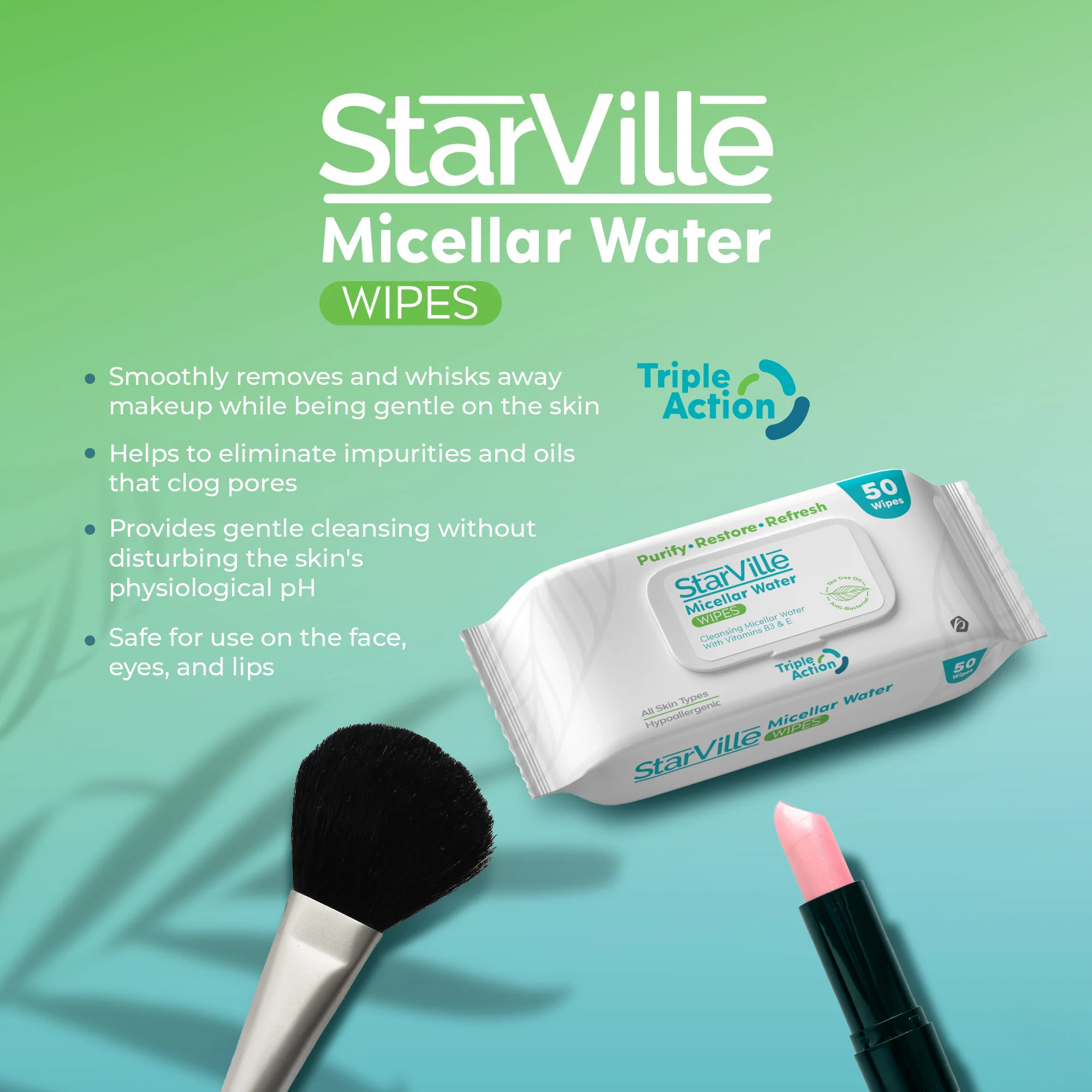 Starville Micellar Water smoothly removes and whisks away makeup while being gentle on the skin. Starville Micellar Water helps get rid of impurities and oil that clog pores and lead to blemishes and imperfections. The micelles in the formula provide gentle cleansing without disrupting the skin’s physiological pH. It enriches your skin with essential vitamins needed for a healthy, glowing, natural look.